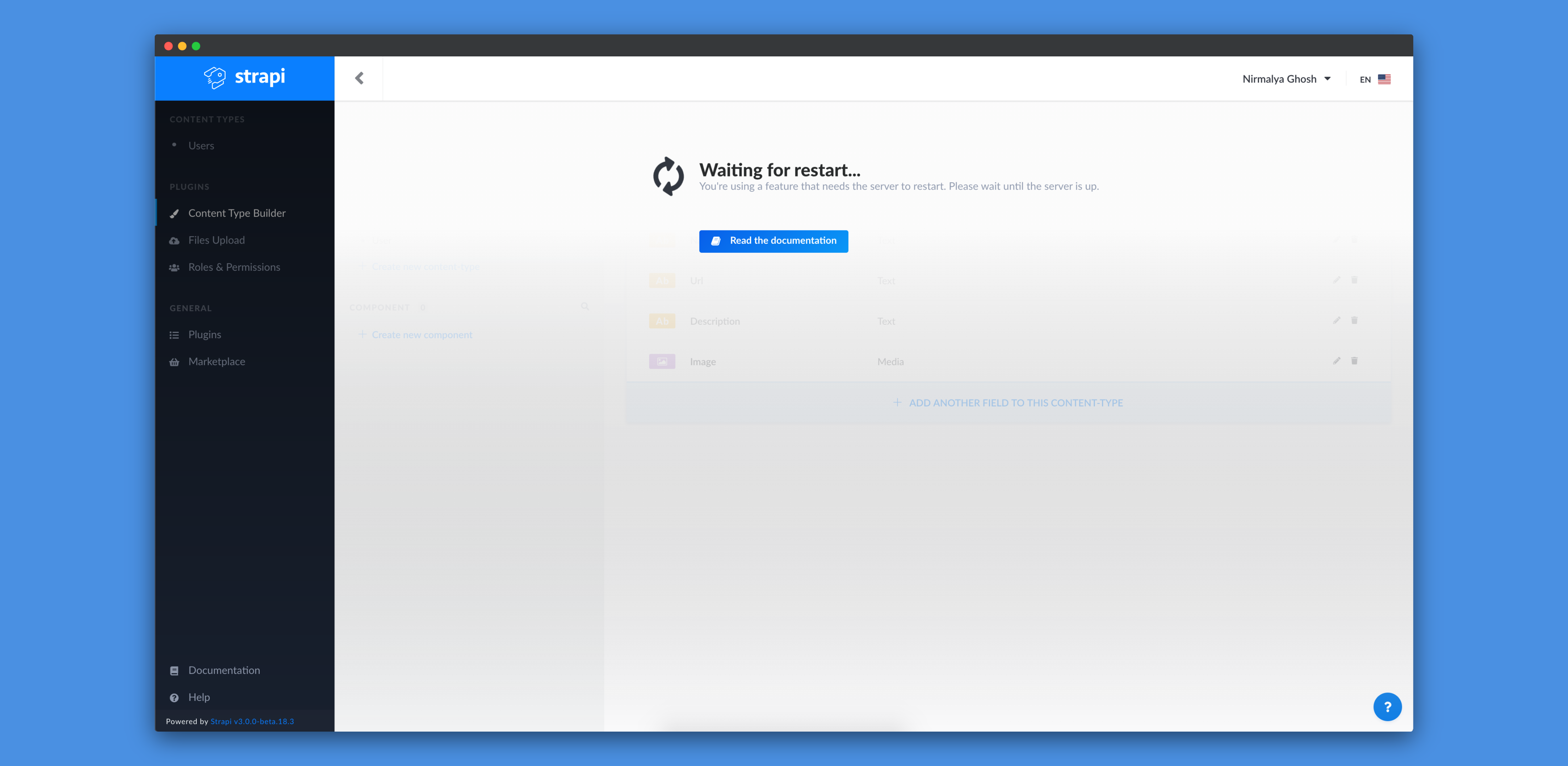 When we click on the Save button, the Strapi server will automatically restart: