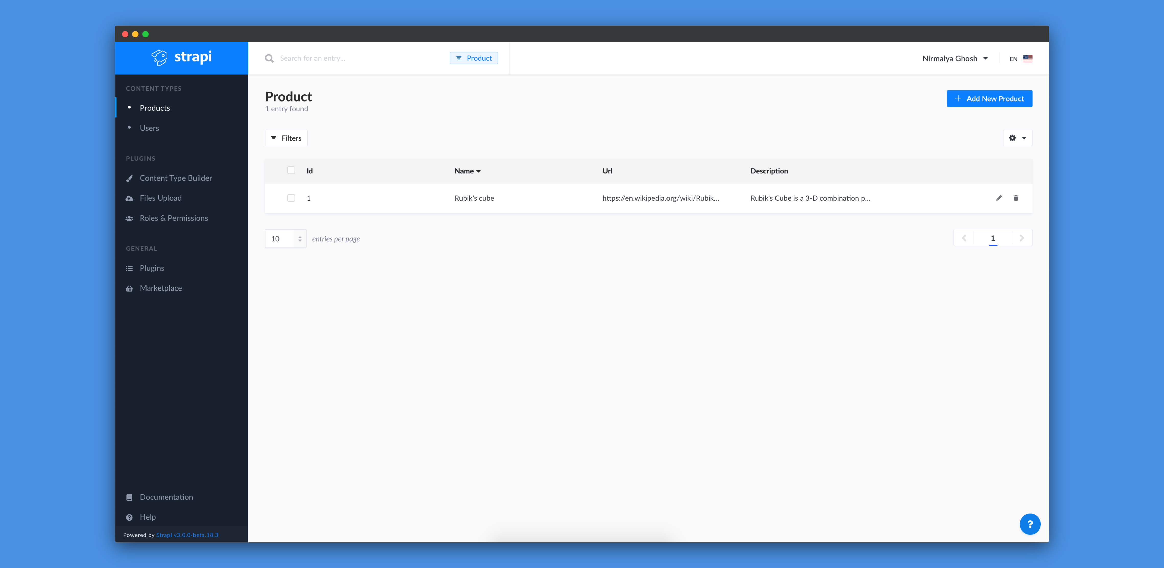 The Product content-type won't have any entries at the moment as we haven't added any entry yet! We can click on Add New Product button to add a new entry to the Product content-type: