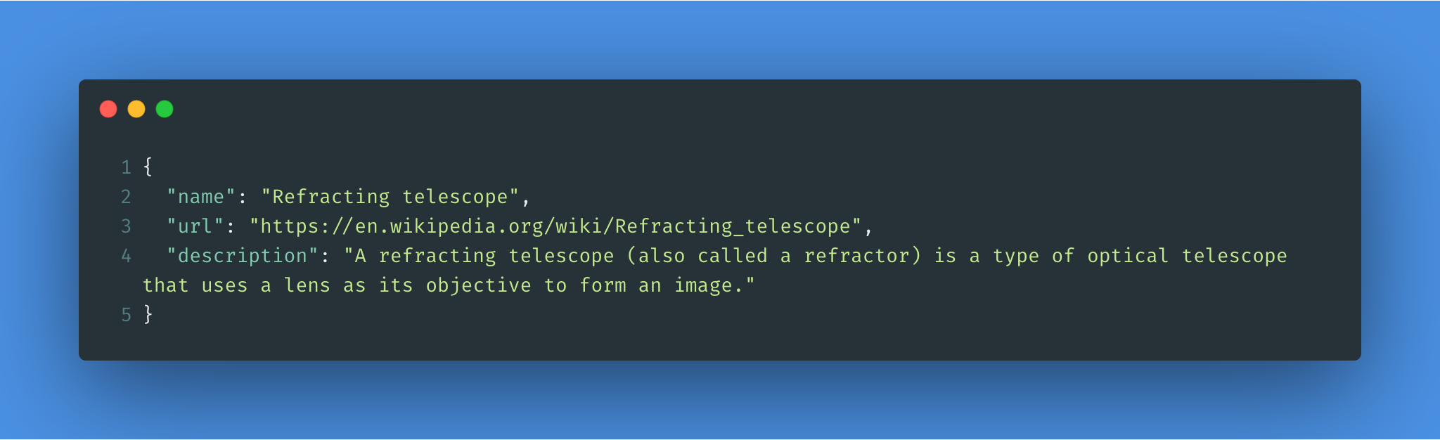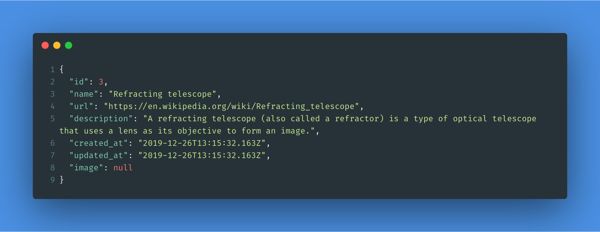 We would get the following response once the entry is created: