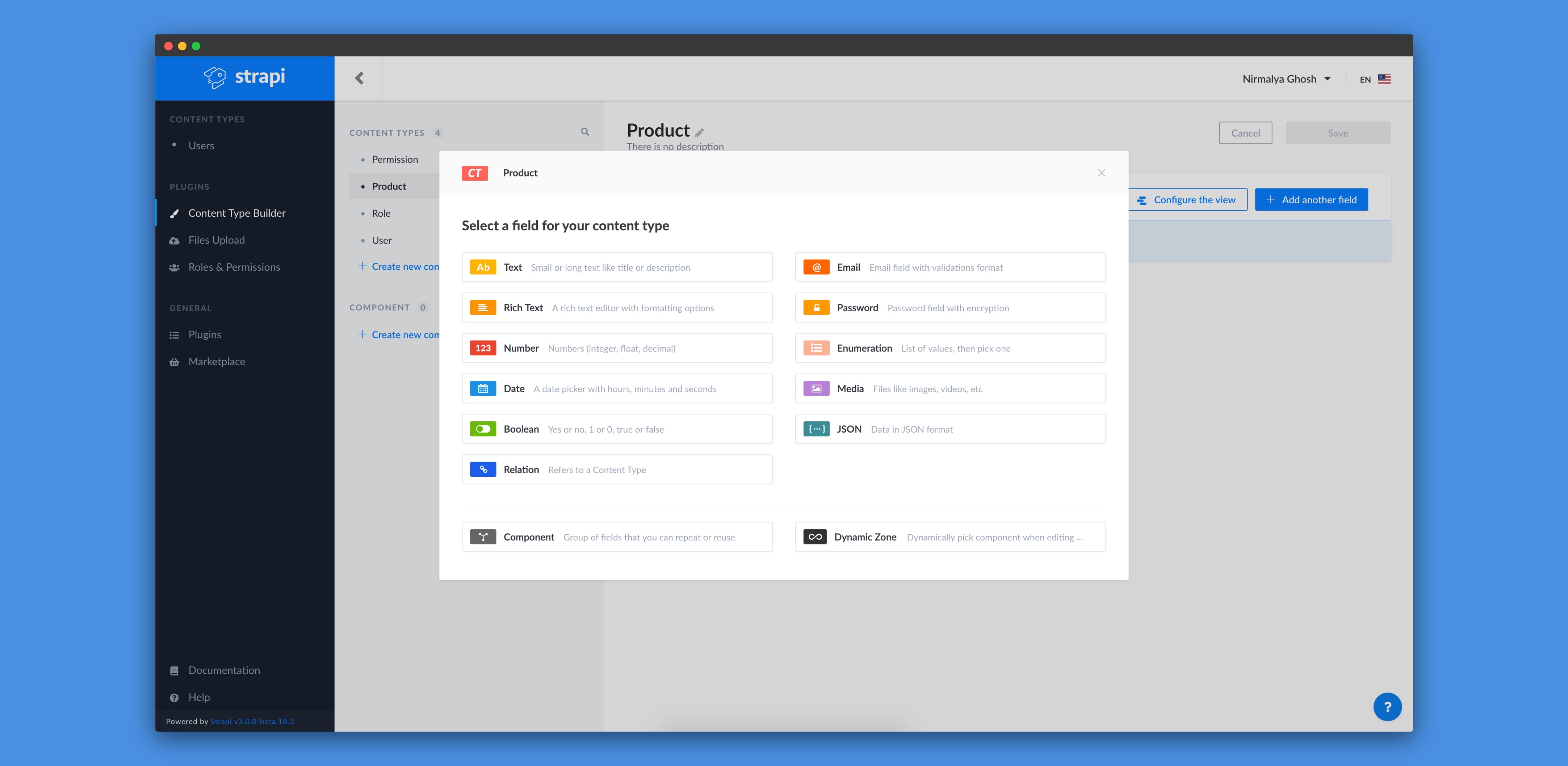 Now, we want to add a Product content-type. To do so, we need to click on the